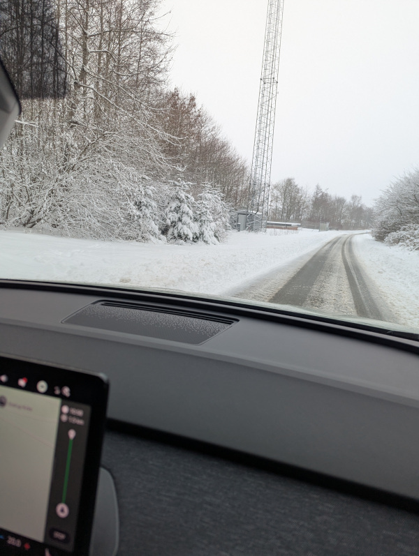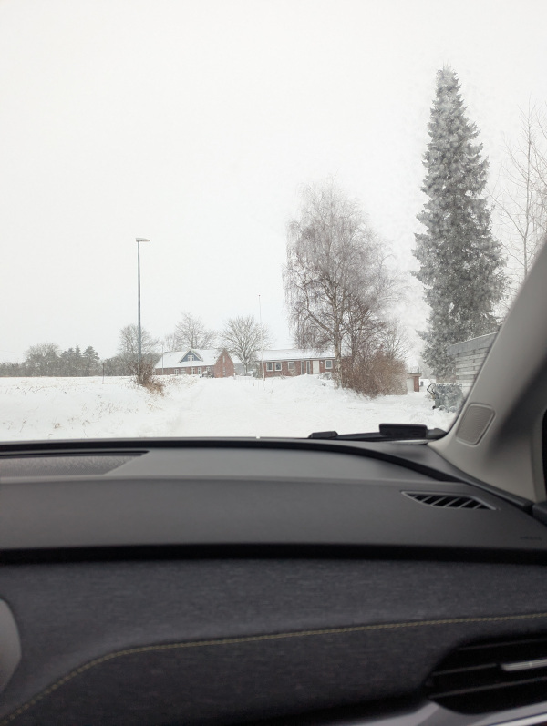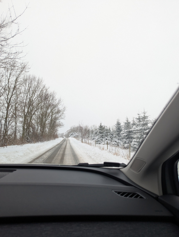 We found a cabin near Kolind on Djursland, hidden in the forest with beautiful natural surroundings. It was very rural and felt far away from civilization. We were surprised by how much snow had fallen the day before. We were almost buried in it, and our car got stuck in the driveway, making it impossible to leave. But since we had already arrived, we decided to stay the night and deal with the situation the next day. I informed the owner that we might risk staying a little longer because the car was stuck.
