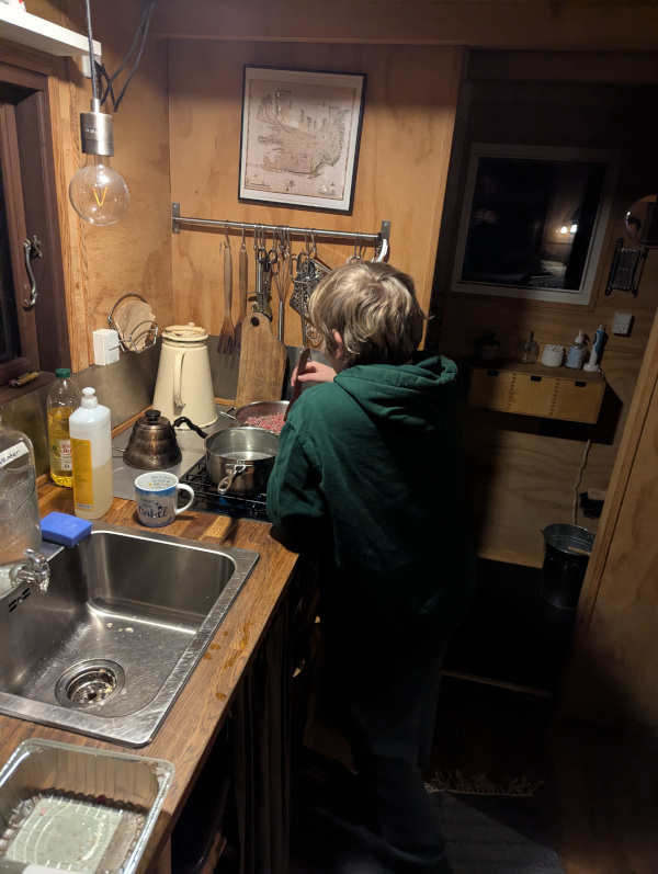 Back then, the experience was a success. In just two days, we felt mentally restored, and our batteries were fully recharged. We both quickly grew fond of it. At the same time, my son learned how things work at a very basic level. He loved having responsibilities such as fetching water, cleaning up, shoveling snow, lighting the fire, and so on. It really lifted him, and he felt proud and happy. At the same time, I grew closer to him. We learned to cooperate, and it became one of our best father-son experiences.